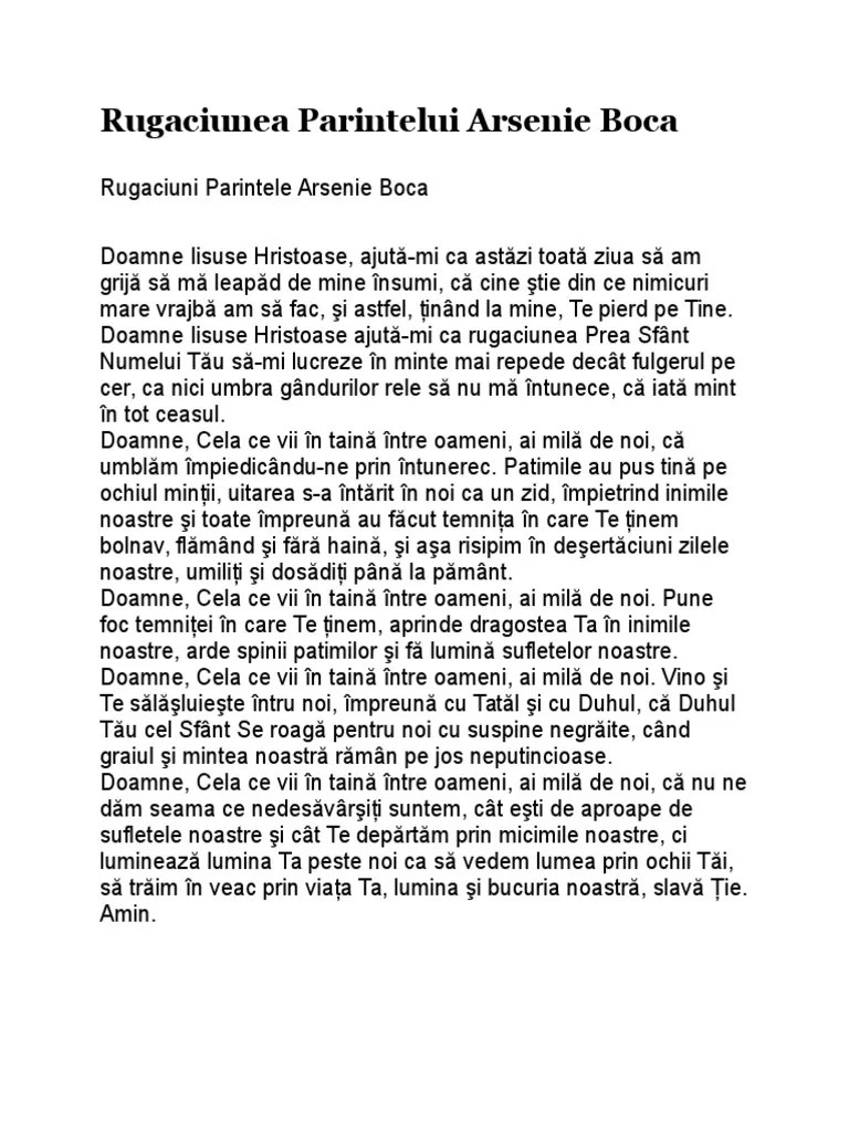 Pururea lauda lui in gura mea… ochii tuturor, doamne spre tine nadajduiesc si tu le dai lor hrana la buna vreme. Doamne, nu ma lipsi pe mine de binele tau cel ceresc. Rugaciunea de dimineata a parintelui arsenie boca rugăciunea de dimineaţă a părintelui arsenie boca. Oaspeti la parohia ortodoxa romana straubing: D oamne miluieste (de 12 ori), apoi rugaciunea aceasta: D oamne miluieste (de 12 ori), apoi rugaciunea aceasta: Doamne, nu ma lipsi pe mine de binele tau cel ceresc.. Omul are o stare de rugăciune, nu momente de rugăciune, momente când se roagă şi momente când nu se roagă.