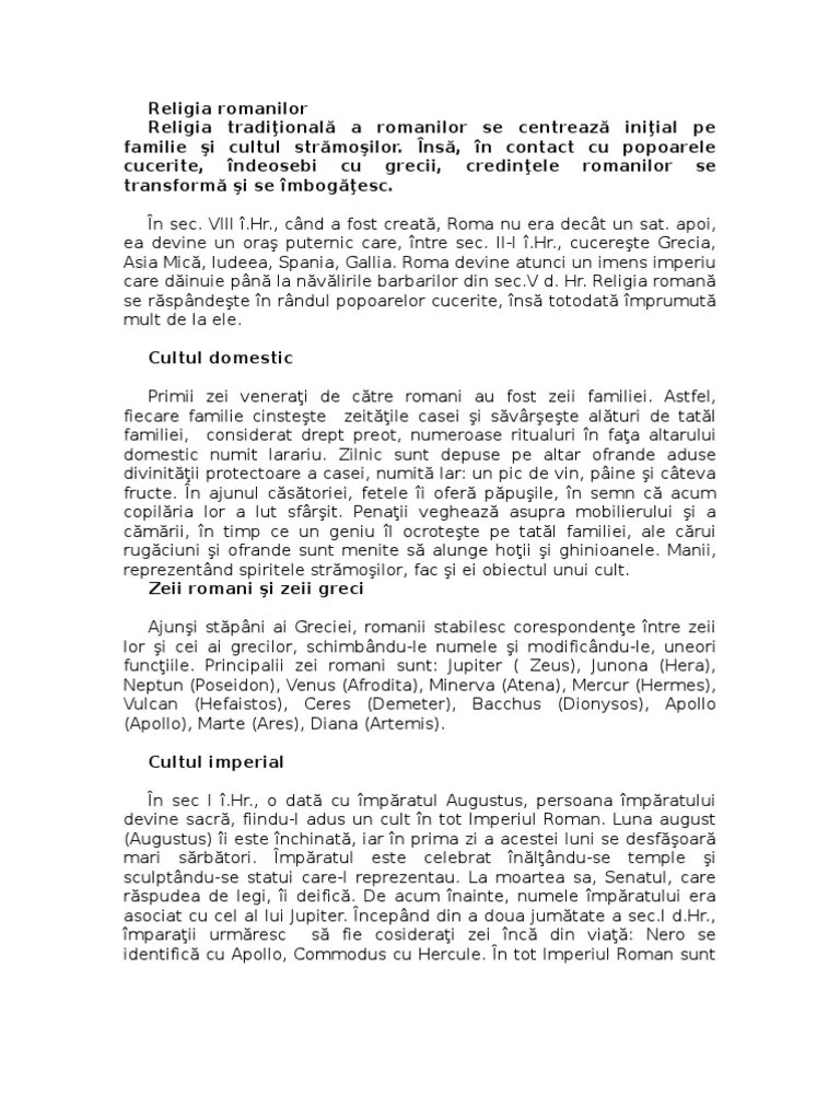 Religia in roma antica si imperiul roman... Religia in roma antica si imperiul roman. Legendele şi miturile antichităţii greceşti prezintă panteonul zeilor din olimp format din 12 mari zei şi zeiţe … Gândirea religioasă în grecia arhaică şi clasică a cunoscut două forme de exprimare: Religia în antichitate în grecia şi la roma 10.12.2016 · religia în grecia și roma antică.